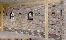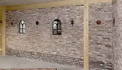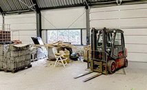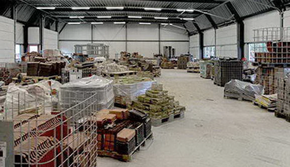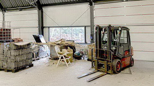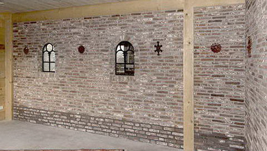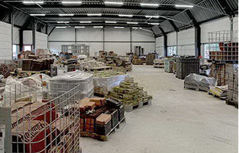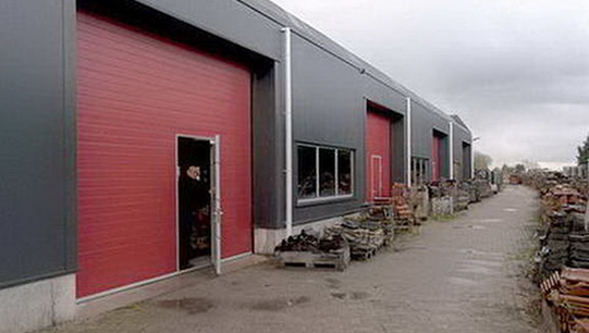 Na jarenlang te hebben gewerkt op een werf in de open lucht met een kleine kantine is nu eindelijk onze droom in vervulling gegaan.  We hebben een prachtige hal met enorm veel ruimte voor alle materialen en in het pand is een fraaie kantine aangelegd, waar de bezoeker de diverse steensoorten kan zien in de vorm van muren met stalramen er in.